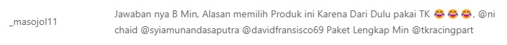 Nah udah tau kan sob apa jawaban yang benar, yuk langsung aja kita umumkan siapa saja pemenangnya, berikut adalah 4 orang beruntung yang mendapatkan THR dari TK RACING!